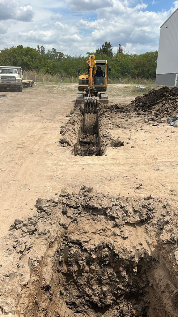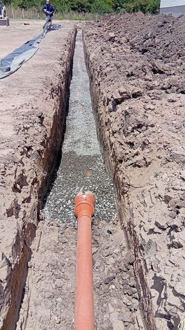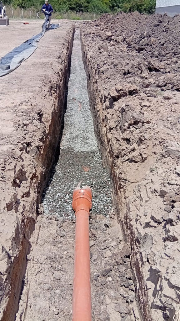 3) Preparación de base y tendido de cañerías.